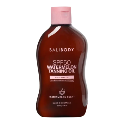 Bali Body Watermelon Tanning Oil SPF50 — інноваційна олія для засмаги з високим рівнем сонцезахисту, створена для отримання рівномірного золотистого відтінку шкіри та одночасного інтенсивного догляду під час перебування на сонці. Формула поєднує живильні рослинні олії та сучасні фотостабільні UV-фільтри, які допомагають зменшити негативний вплив ультрафіолетового випромінювання та підтримують здоровий стан шкіри. Олія виноградних кісточок, кокоса та мигдалю глибоко живить епідерміс, зменшує сухість, підтримує еластичність і надає шкірі природного сяйва та гладкості. Екстракт кавуна багатий антиоксидантами та допомагає підтримувати свіжість шкіри, зменшуючи вплив фотостресу. Засіб допомагає сформувати рівний тон засмаги, підтримує комфорт шкіри під час сонячного впливу та створює ефект здорової, доглянутої та сяючої шкіри. SEO: олія для засмаги SPF50, олія для рівномірної засмаги, олія для засмаги з кавуном, сонцезахисна олія для тіла, натуральна олія для бронзової засмаги.