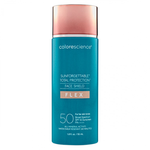 Colorescience Sunforgettable Total Protection Face Shield Flex Fair SPF 50 — тонований мінеральний сонцезахисний крем із легким покриттям у відтінку Fair, який поєднує високий UVA/UVB-захист та ефект вирівнювання тону. Формула з адаптивними пігментами допомагає надати шкірі більш рівний, свіжий вигляд, м’яко маскує почервоніння й дрібні недосконалості, не обтяжуючи шкіру.