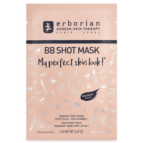 Вирівнююча тканинна маска Erborian BB Shot Mask — інтенсивна маска, натхненна ефектом знаменитого BB-крему. Моментально освіжає, вирівнює текстуру, пом’якшує та надає обличчю природного сяйва. Ідеальна як експрес-догляд перед нанесенням макіяжу або важливою подією.